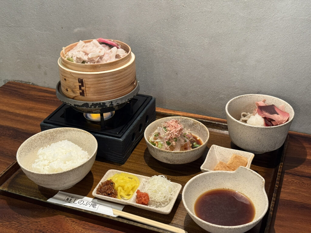 | 松坂豚のせいろ蒸し御膳 松坂豚のせいろ蒸し ご飯 おぼろ豆腐サラダ お蕎麦(温・冷) 漬物・デザート | 2400円(税込2640円) |