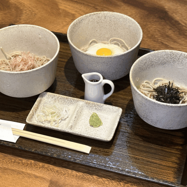 3種のお蕎麦を特製甘だれでお楽しみ頂けます。