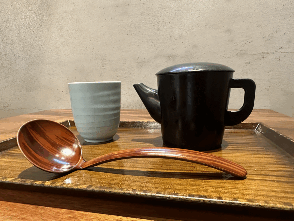 しのぶ庵では、栄養も香りもたっぷりの蕎麦湯を、専用のポットで提供しています。