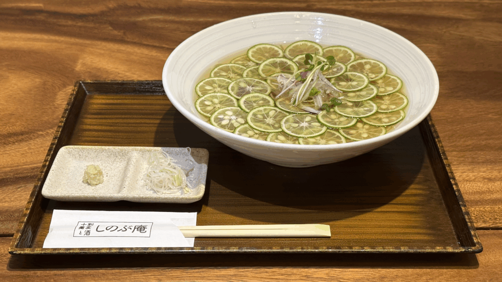 たっぷりのすだちが見た目にも香りにも清涼感を添え、出汁とのバランスがクセになります。